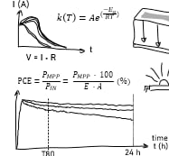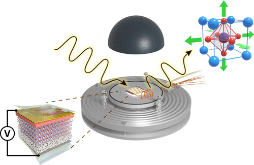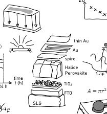 The long time for evaluation of perovskite solar cells and the need for development of methods to understand solar cell degradation under voltage bias and illumination effects (excess carriers), led us to design an accelerated stress test with a large forward bias voltage during acquisition of X-ray diffraction by using a specialised setup and a re-designed top electrode.
